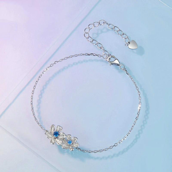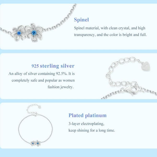 BSB138 925 Sterling Silver Zircon Blue Floret Bracelet
