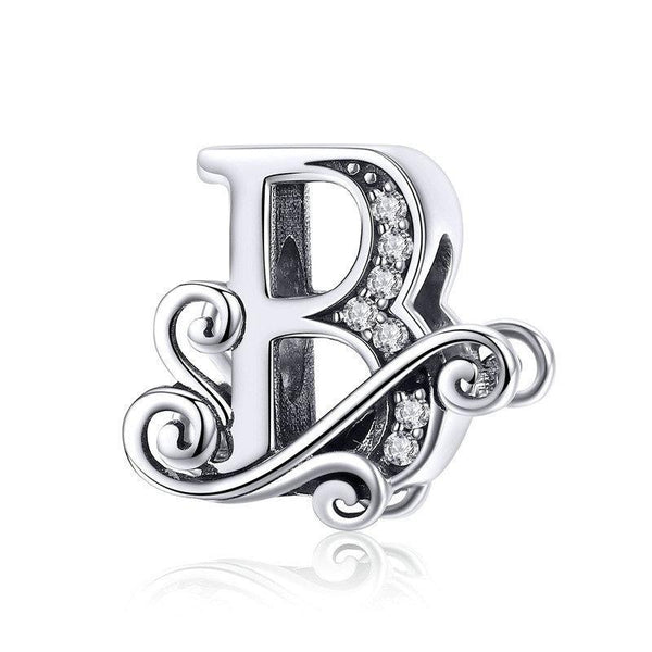 BSC030 26 Letters DIY Bracelet Beaded Accessories Zircon Silver Beads, Style: B