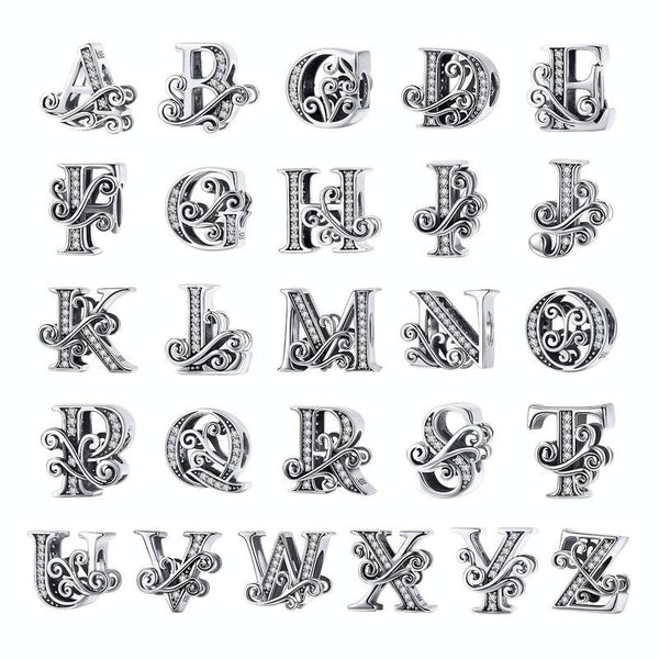 BSC030 26 Letters DIY Bracelet Beaded Accessories Zircon Silver Beads, Style: I