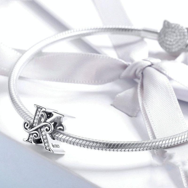 BSC030 26 Letters DIY Bracelet Beaded Accessories Zircon Silver Beads, Style: N