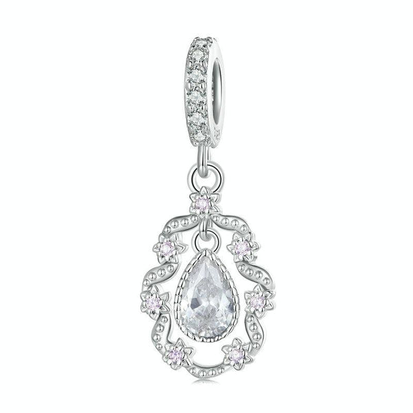 BSC740 Sterling Silver S925 White Gold Plated Purple Zirconia Lace Bracelet Charm Beads