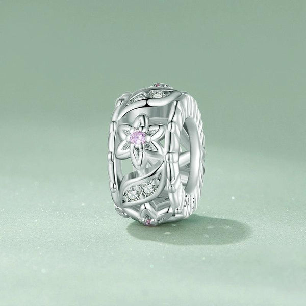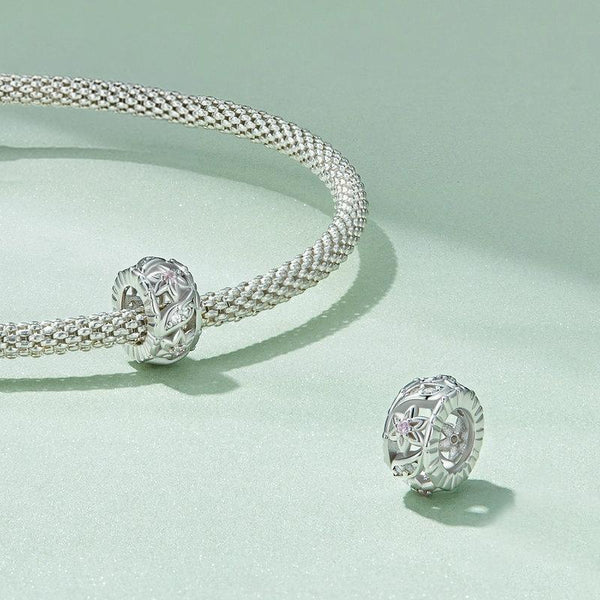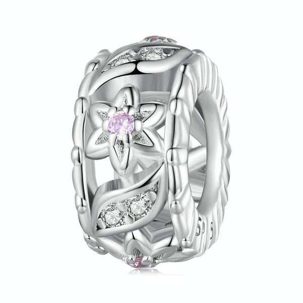 BSC741 S925 Sterling Silver Plated White Gold Zircon Flower Hollow Pattern Bracelet Beads