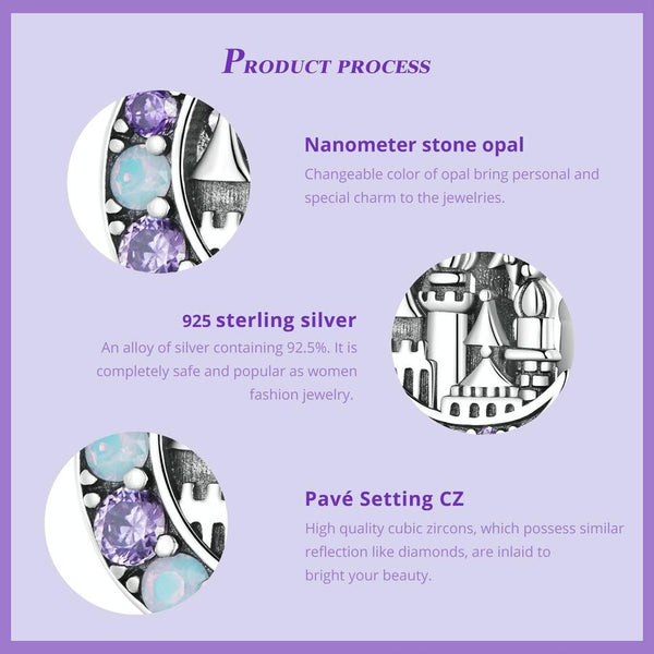 BSC892925 Sterling Silver Purple Moon Moonlight Castle Diy Beaded Bracelet Accessories