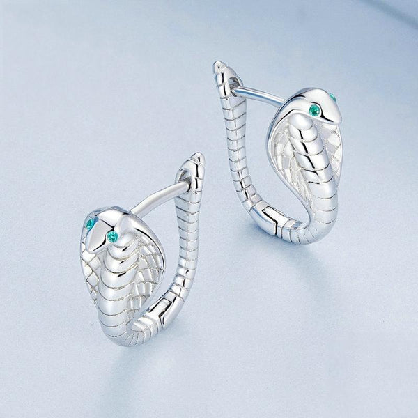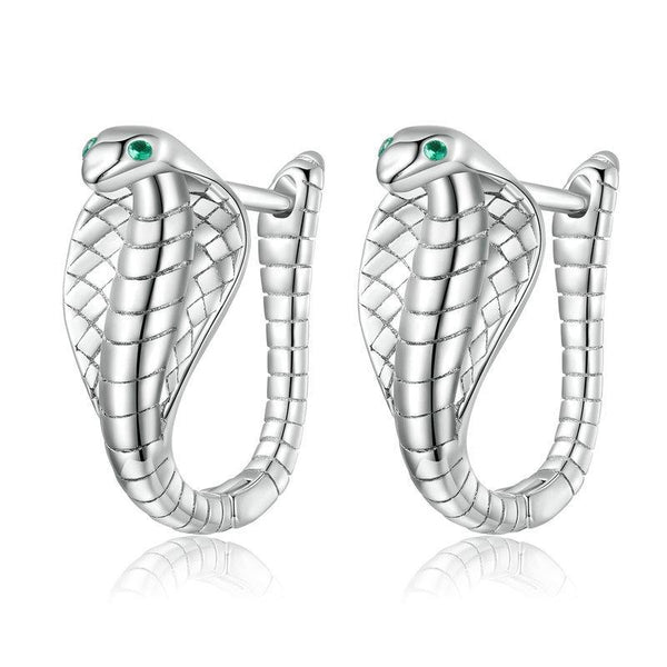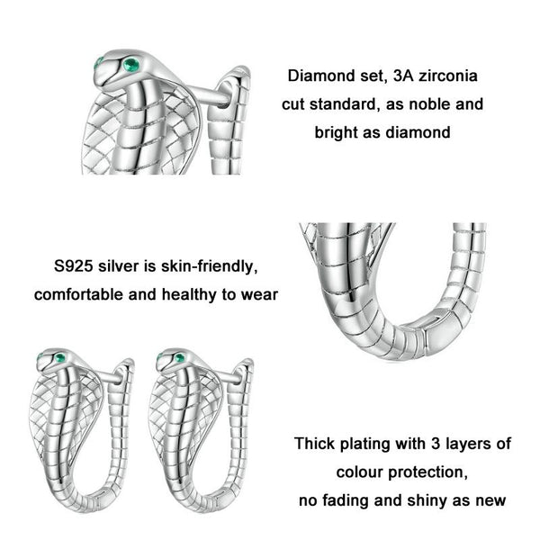 BSE728 Sterling Silver S925 White Gold Plated Zirconia Cobra Earrings