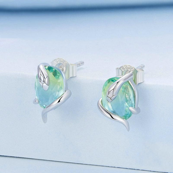 BSE731 Sterling Silver S925 Gradient Glass Winding Snake Earrings