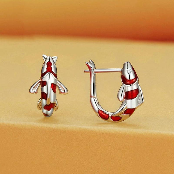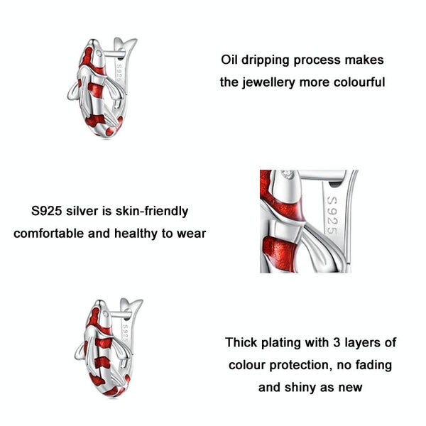 BSE742 Sterling Silver S925 Zirconia White Gold Plated Good Luck Koi Earrings
