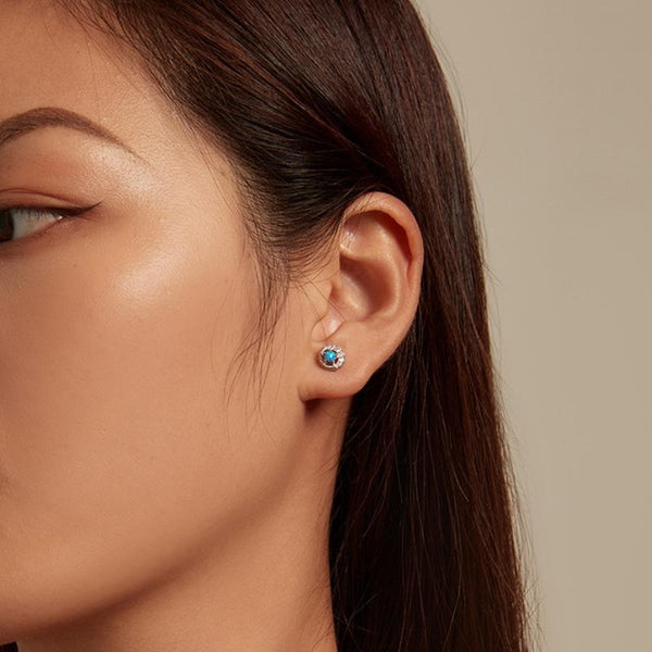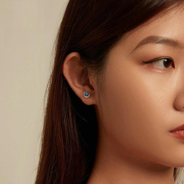 BSE746 Sterling Silver S925 White Gold Plated Zirconia Opal Star and Moon Earrings