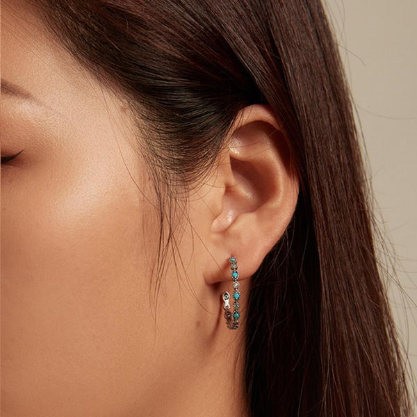 1. Material: 925 silver + synthetic turquoise + zircon + oxidation