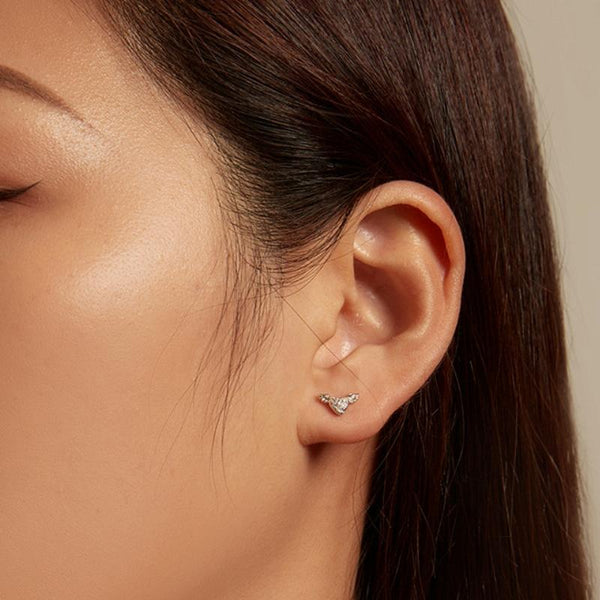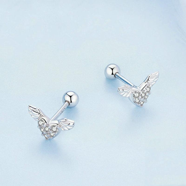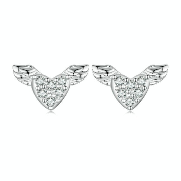 BSE756 Sterling Silver S925 Love Wings White Gold Plated Zirconia Earrings