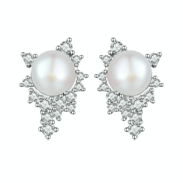 BSE761 Sterling Silver S925 White Gold Plated Zirconia Bead Earrings