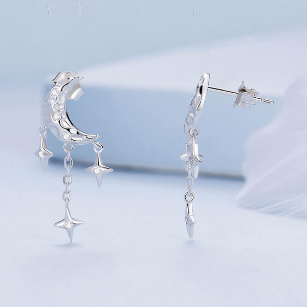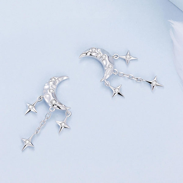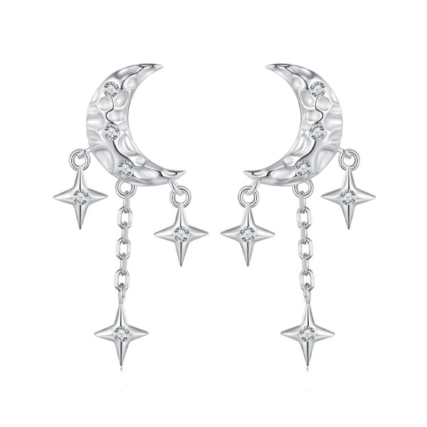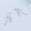 BSE858 Sterling Silver S925 White Gold Plated Zircon Moon Tassel Stud Earrings