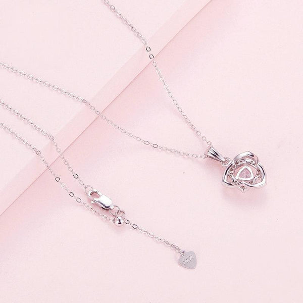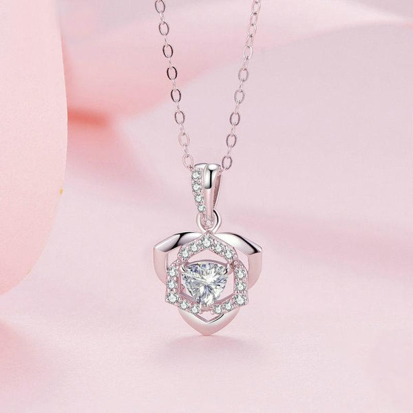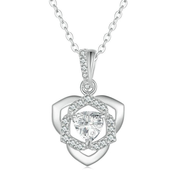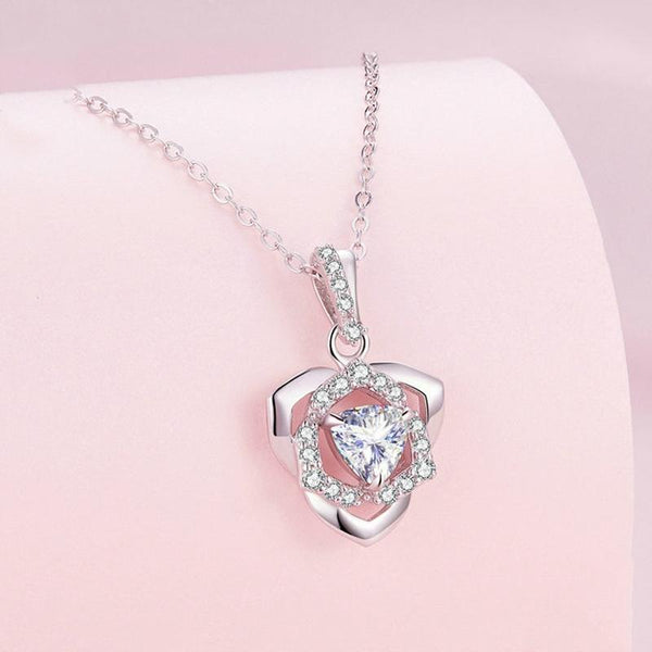 BSN299 Sterling Silver S925 Rose Heart Pendant White Gold Plated Zircon Necklace