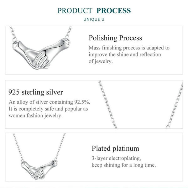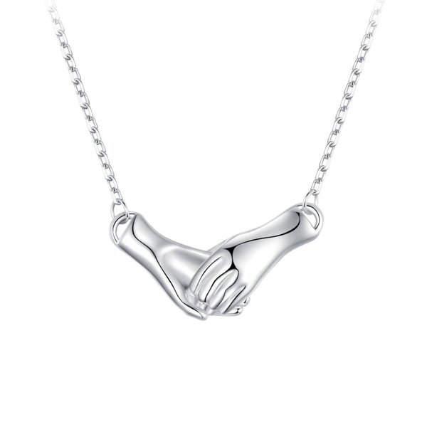 BSN337 Sterling Silver S925 White Gold Plated Holding Hand Line Necklace
