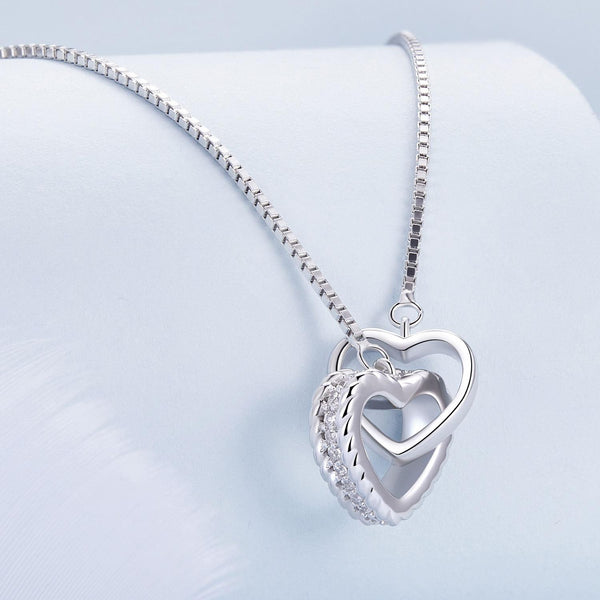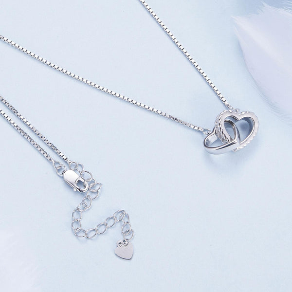 BSN339 Sterling Silver S925 White Gold Plated Zircon Dual Ring Heart Interlocking Necklace