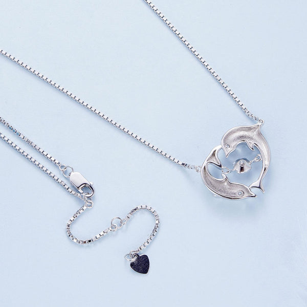 BSN340 Sterling Silver S925 White Gold Plated Zircon Cute Dolphin Necklace