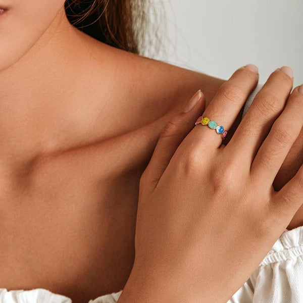 BSR220 Sterling Silver S925 Colorful Smiley Face Drip Oil Ring(No.7)