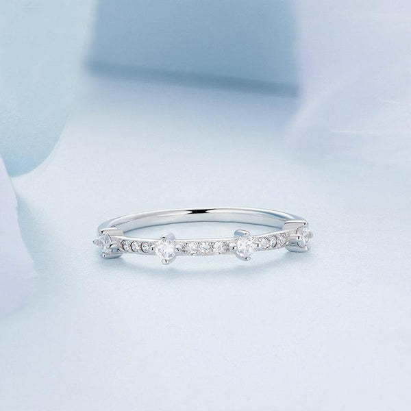 BSR302 Sterling Silver S925 White Gold Plated Geometric Claw Set Zirconia Ring(No.6)