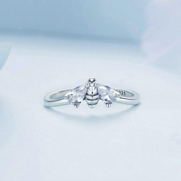 BSR307 Sterling Silver S925 Small Bee Cute Insect Zirconia Ring(No.7)