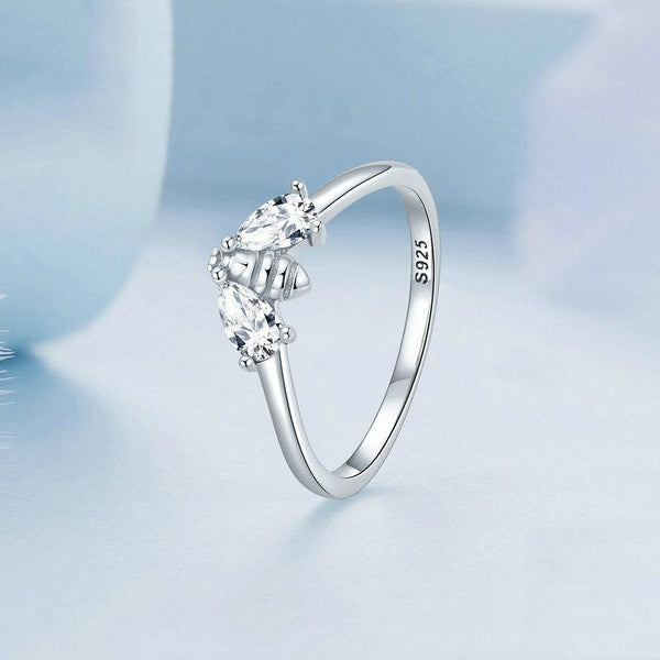 BSR307 Sterling Silver S925 Small Bee Cute Insect Zirconia Ring(No.8)