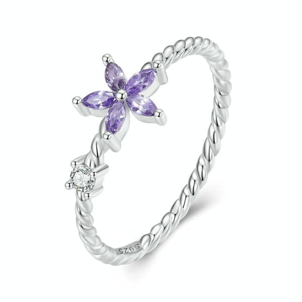 BSR326 Sterling Silver S925 Geometric Zirconia Purple Flower White Gold Plated Ring(No.8)