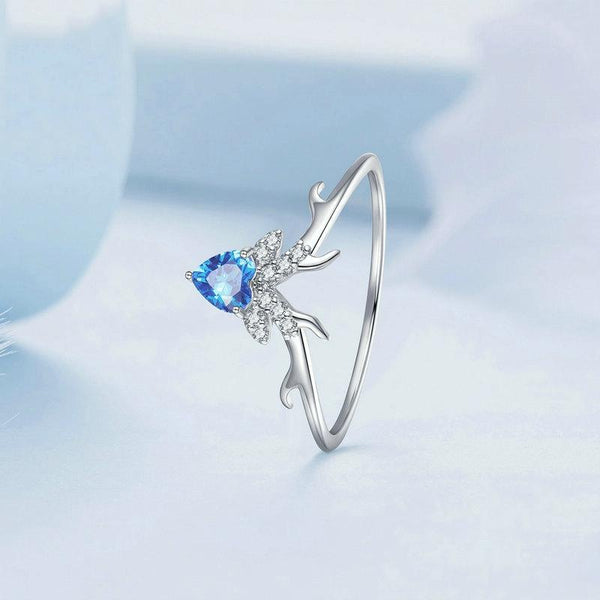BSR338 Sterling Silver S925 White Gold Plated Blue Heart Deer Zirconia Ring(No.6)