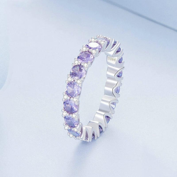 BSR340 Sterling Silver S925 Geometric Purple Zirconia White Gold Plated Ring(No.7)