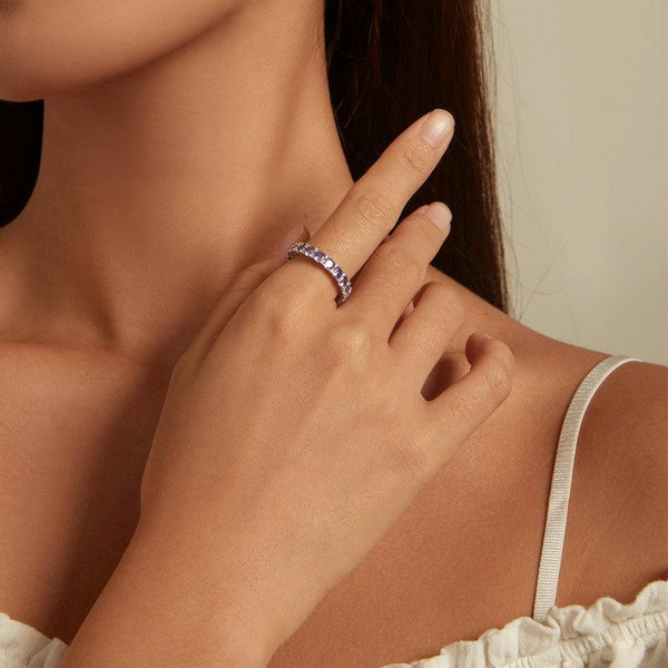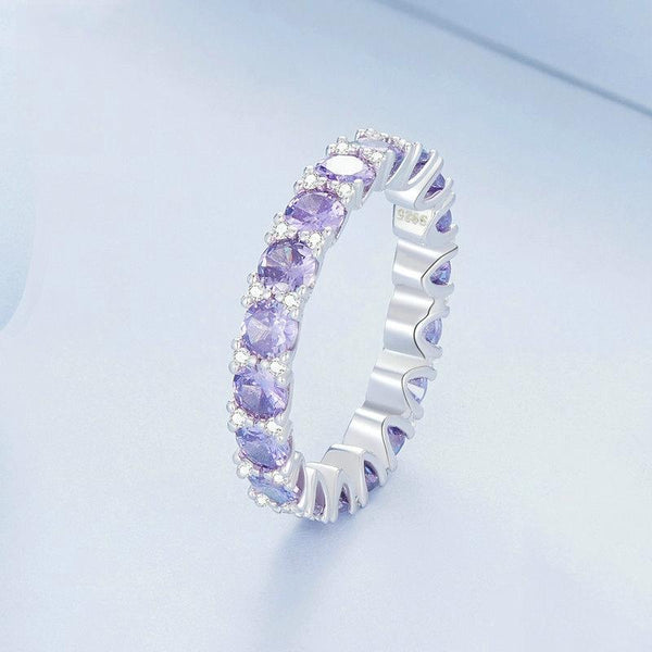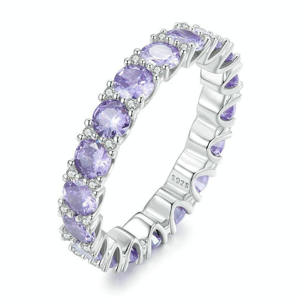 BSR340 Sterling Silver S925 Geometric Purple Zirconia White Gold Plated Ring(No.8)