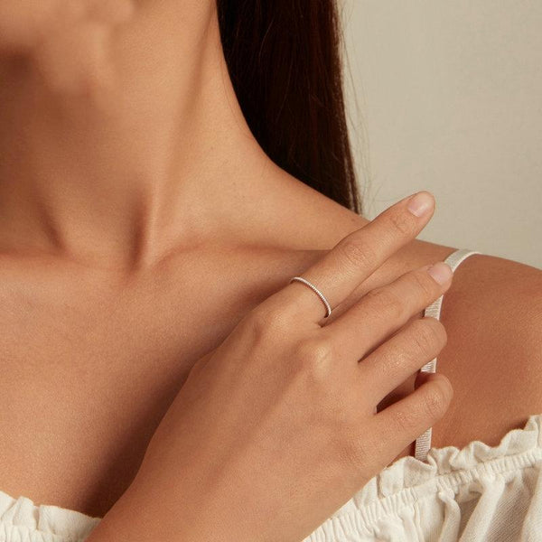BSR343 Sterling Silver S925 Textured Versatile Slim Silver Ring(No.8)