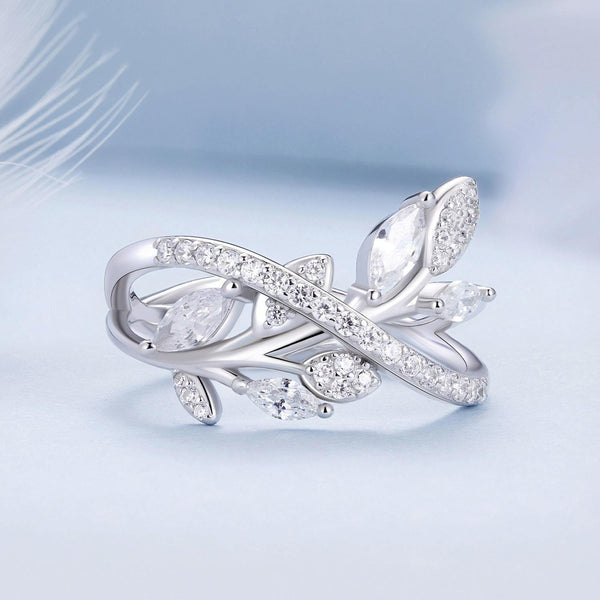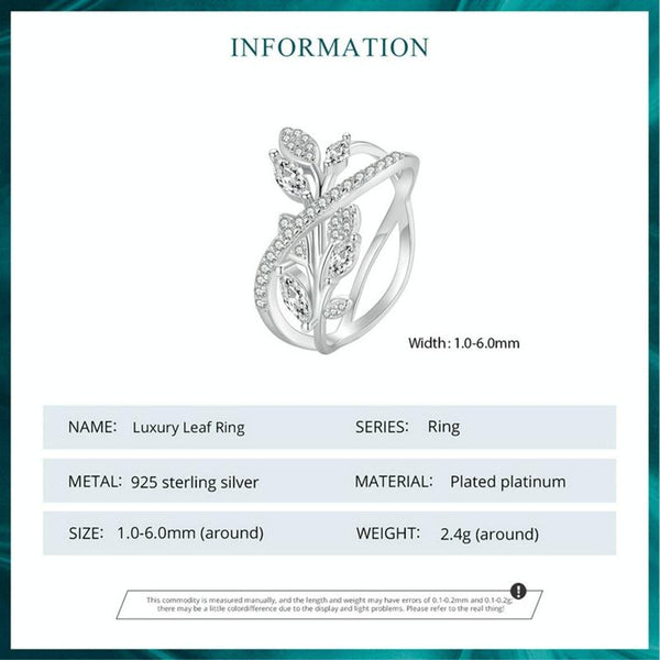 BSR453-6 S925 Sterling Silver White Gold Plated Zircon Luxury Leaf Ring