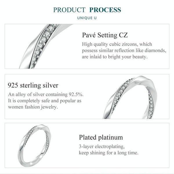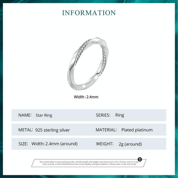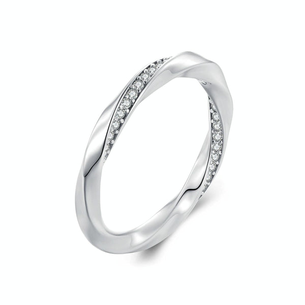 BSR457-6 S925 Sterling Silver White Gold Plated Zircon Mobius Ring Hand Decoration