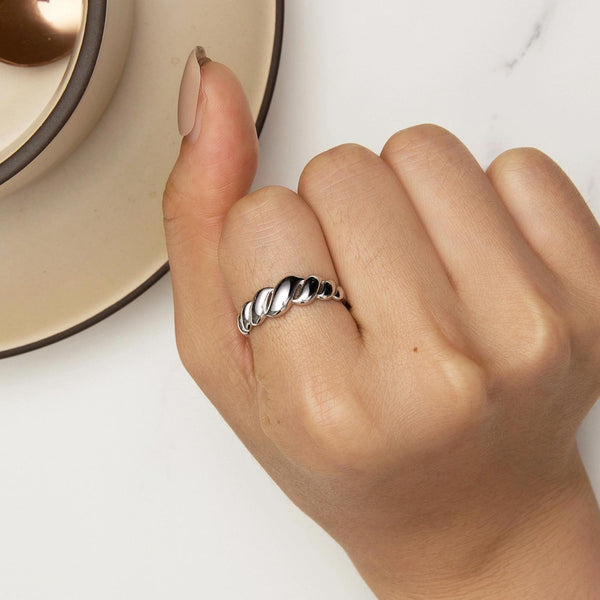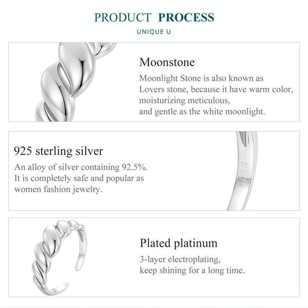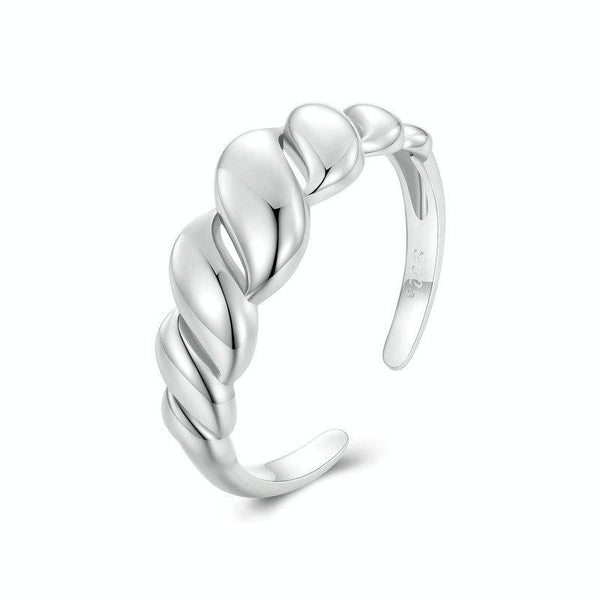BSR459-E S925 Sterling Silver White Gold Plated Wavy Open Adjustable Ring