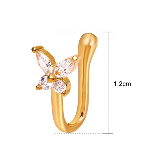 Butterfly Nose Clip Copper Inlaid Zircon U-shaped Nose Decoration(A-1204 Gold)