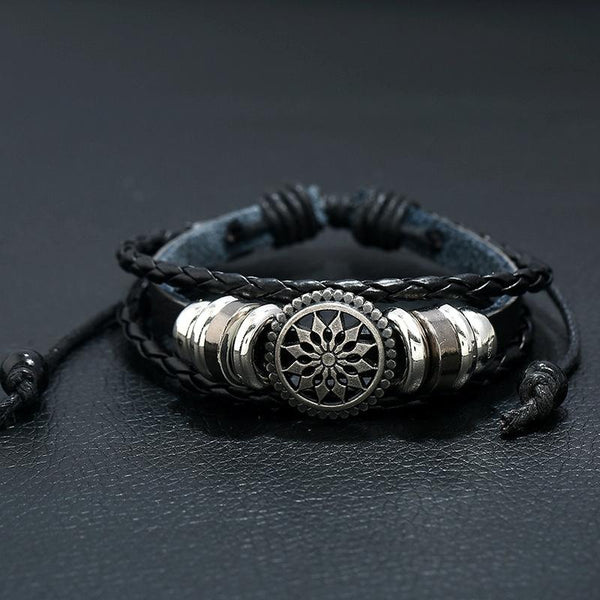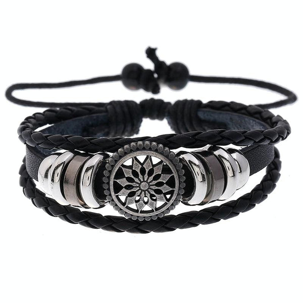 BX222 Sun Flower Beads Leather Personality Knitting Adjustable Bracelet
