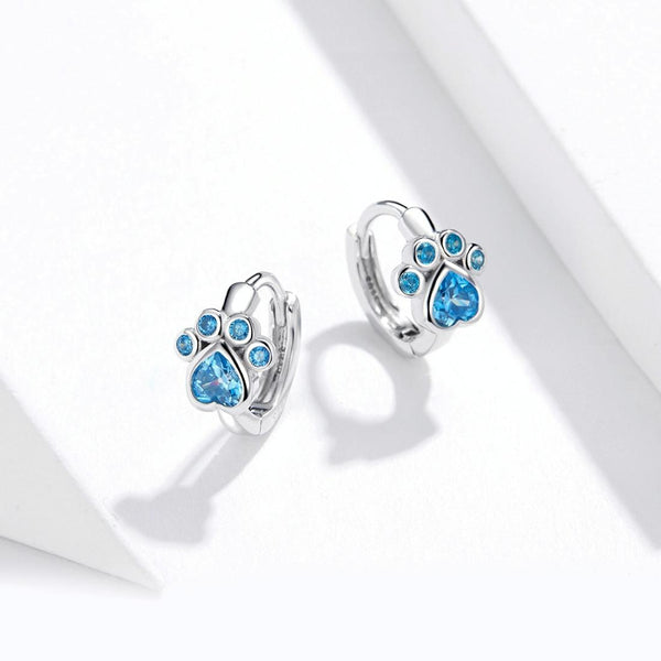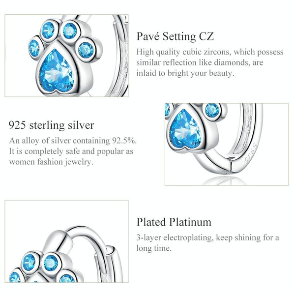 Cat Paw Print Simple Sterling Silver Zircon Earrings Earrings