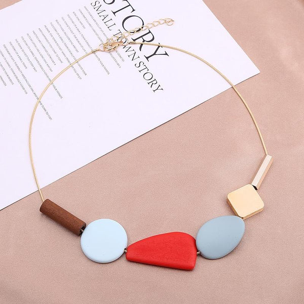 Colorful Resin Beads Statement Necklace Women Multicolor Wood Necklaces Pendants(Red)