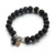 Couple Wooden Beads Elastic Cord Bracelet Alloy Cross Beads(Black)