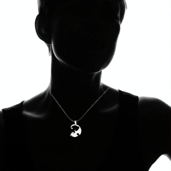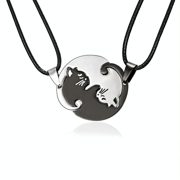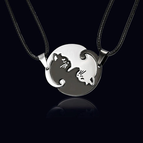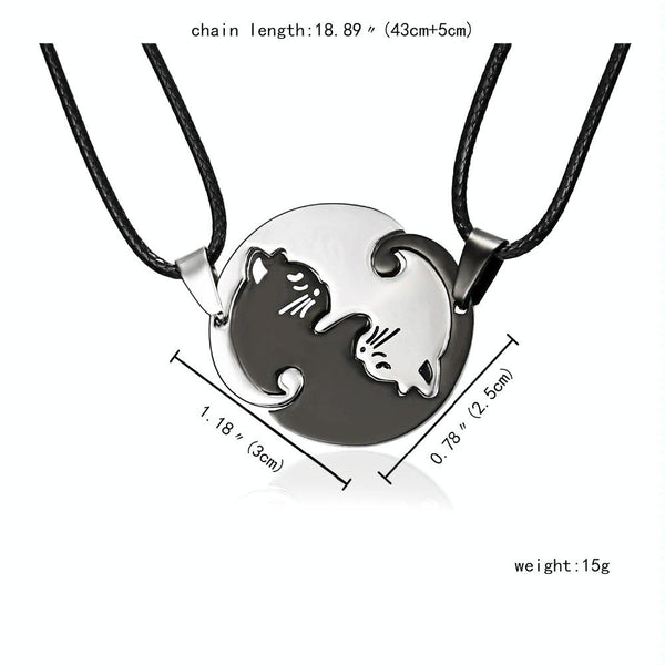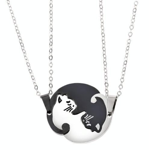 Couples Jewelry Necklaces Titanium Steel Animal Cat Pendants Necklace(White and Black Cat with Metal Chain)