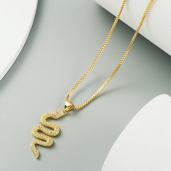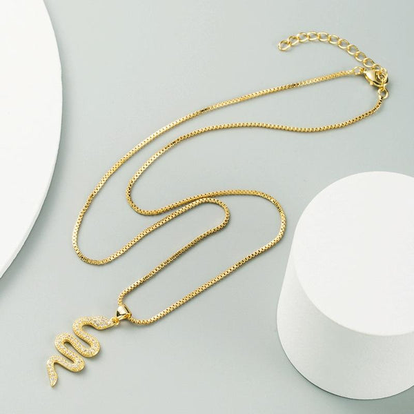 Creative Snake-shaped Pendant Necklace Personality Female Punk Style Inlaid Zircon Necklace