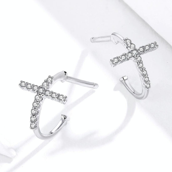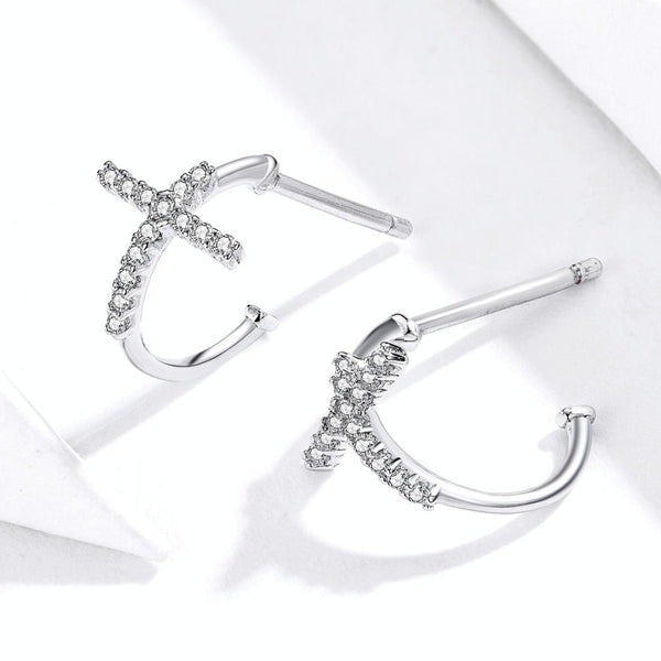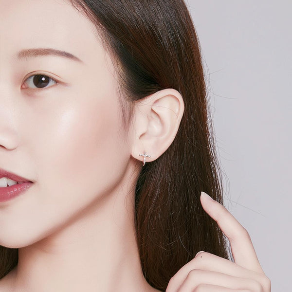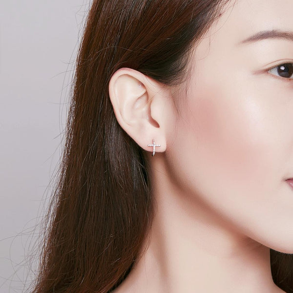 Cross Earrings Sterling Silver S925 Zircon Earrings