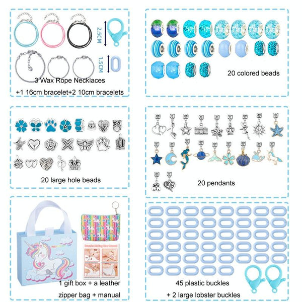 Crystal Beaded Bracelet Set Kids Necklace DIY Educational Toys(Blue)