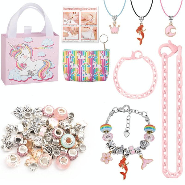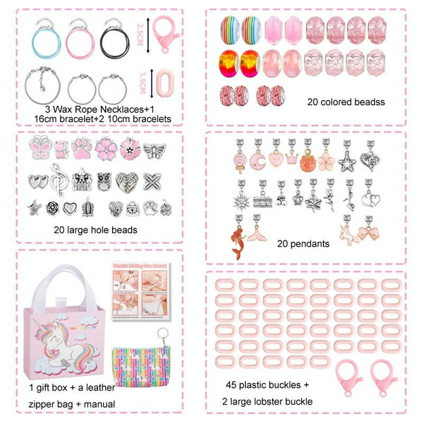 Crystal Beaded Bracelet Set Kids Necklace DIY Educational Toys(Pink)