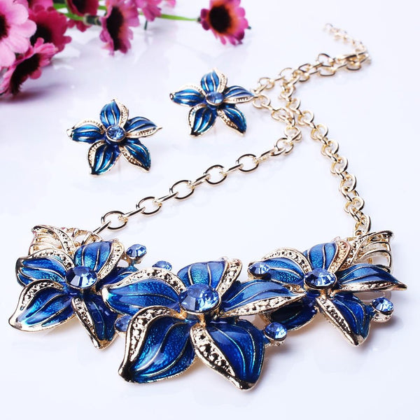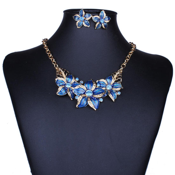 Crystal Enamel Flower Jewelry Sets For Women(Blue)