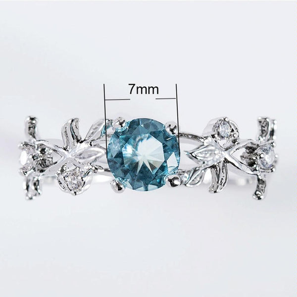 Crystal Vine Leaf Design Engagement Ring Fashion For Women Jewelry, Ring Size:7(Green)