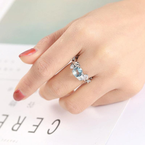 Crystal Vine Leaf Design Engagement Ring Fashion For Women Jewelry, Ring Size:9(Sky blue)