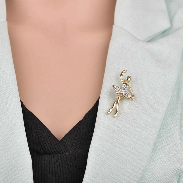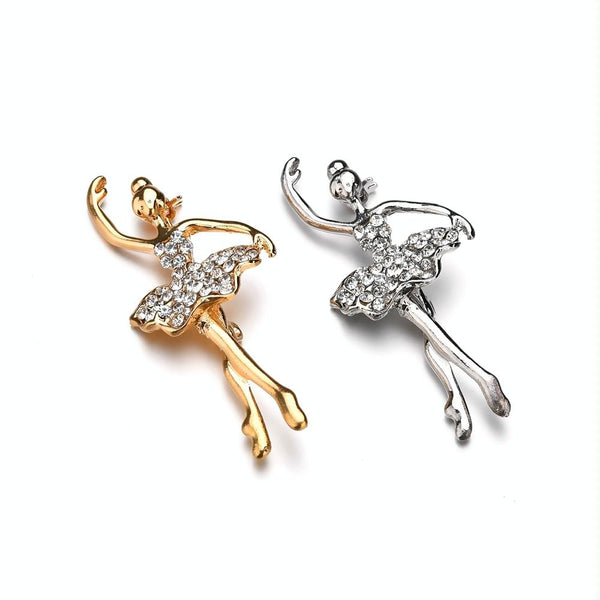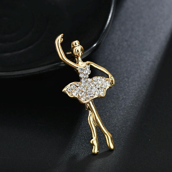 Crystals Flower Skirt Ballet Dancer Ballerinas Brooch(Gold)