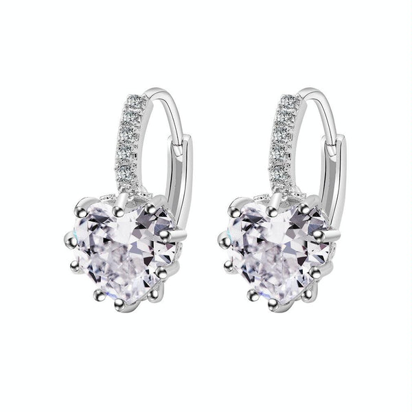 Cute Heart Real 925 Sterling Silver Cubic Zirconia Stone Earrings