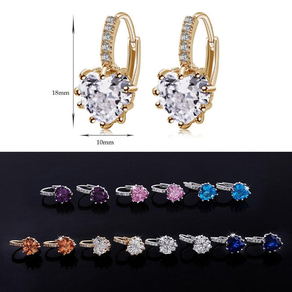 Cute Heart Real 925 Sterling Silver Cubic Zirconia Stone Earrings