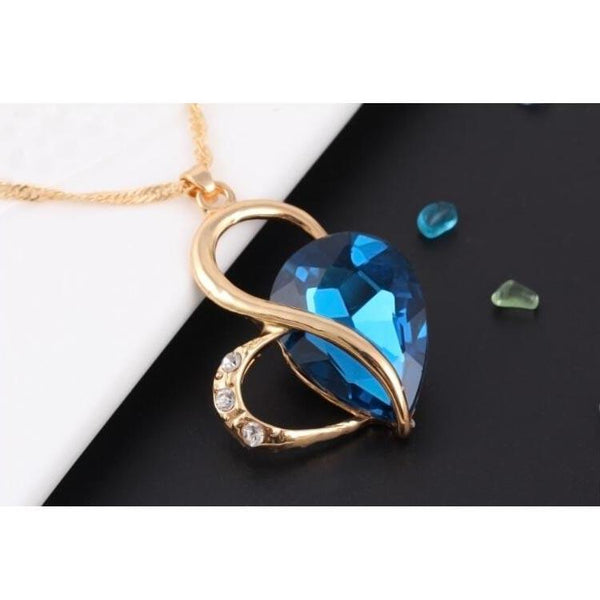 Cute Heart Shaped Crystal Stud Necklace Jewellery Set(Blue)