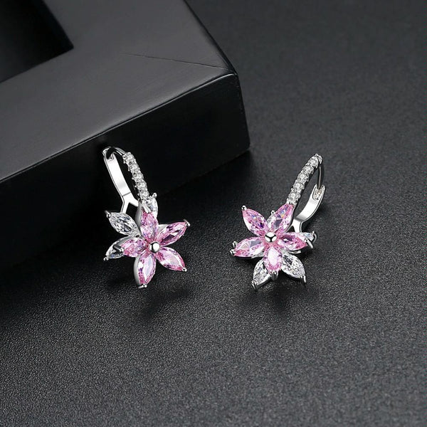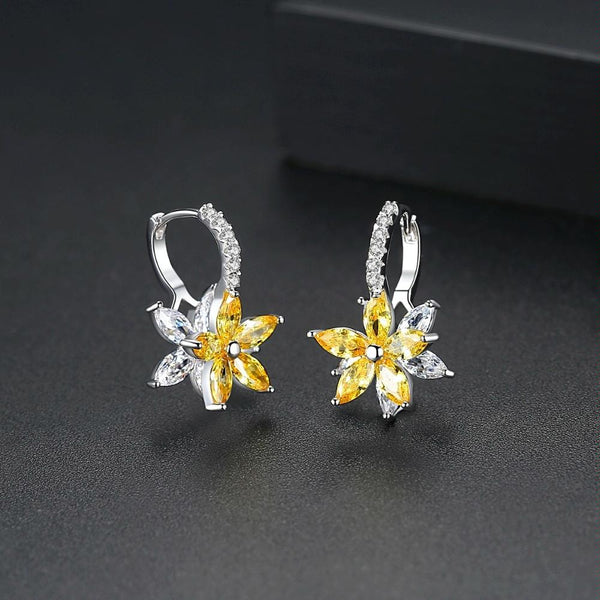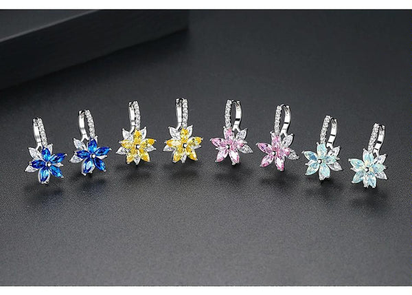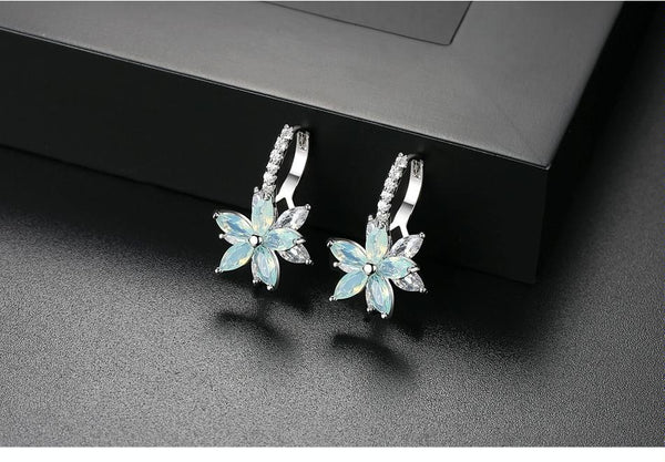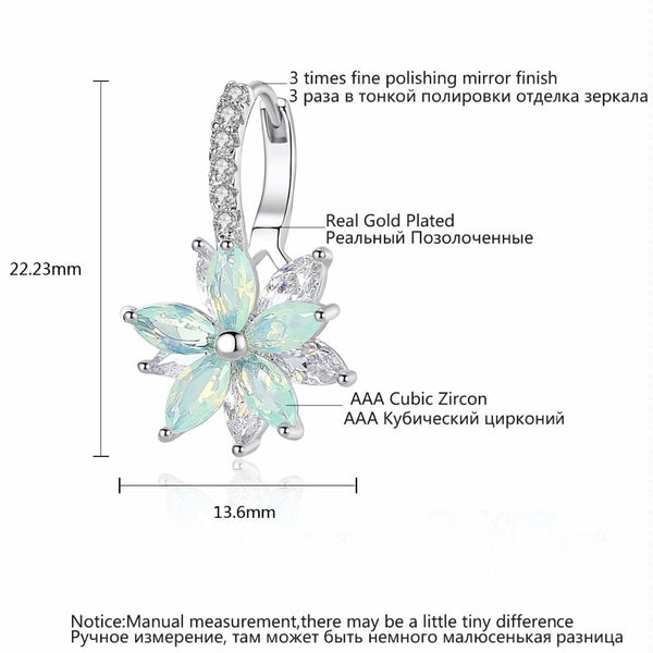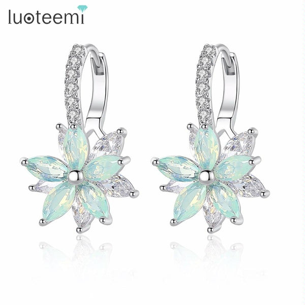 Cute Romantic Lovely Clear Stone Flower Shape Convenient Simple Stud Copper Cubic Zirconia Earrings(Green)