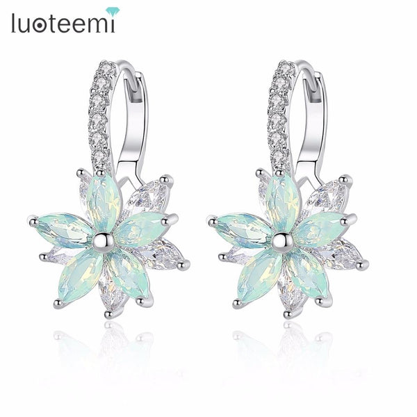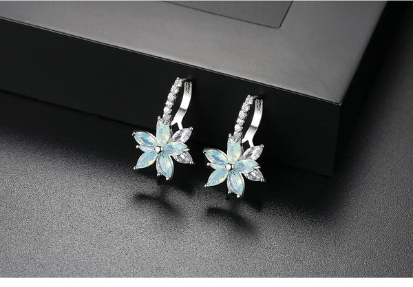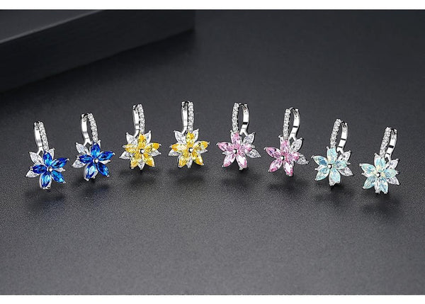 Cute Romantic Lovely Clear Stone Flower Shape Convenient Simple Stud Copper Cubic Zirconia Earrings(Pink)